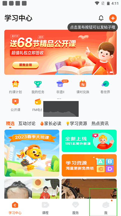 1、用戶需要打開(kāi)VIPKID英語(yǔ)家長(zhǎng)版app,在首頁(yè)點(diǎn)擊“我的”。