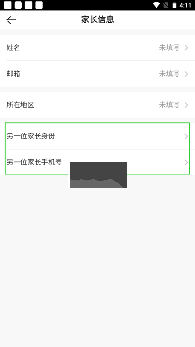 5、選擇好家長(zhǎng)身份并填寫(xiě)相關(guān)信息。