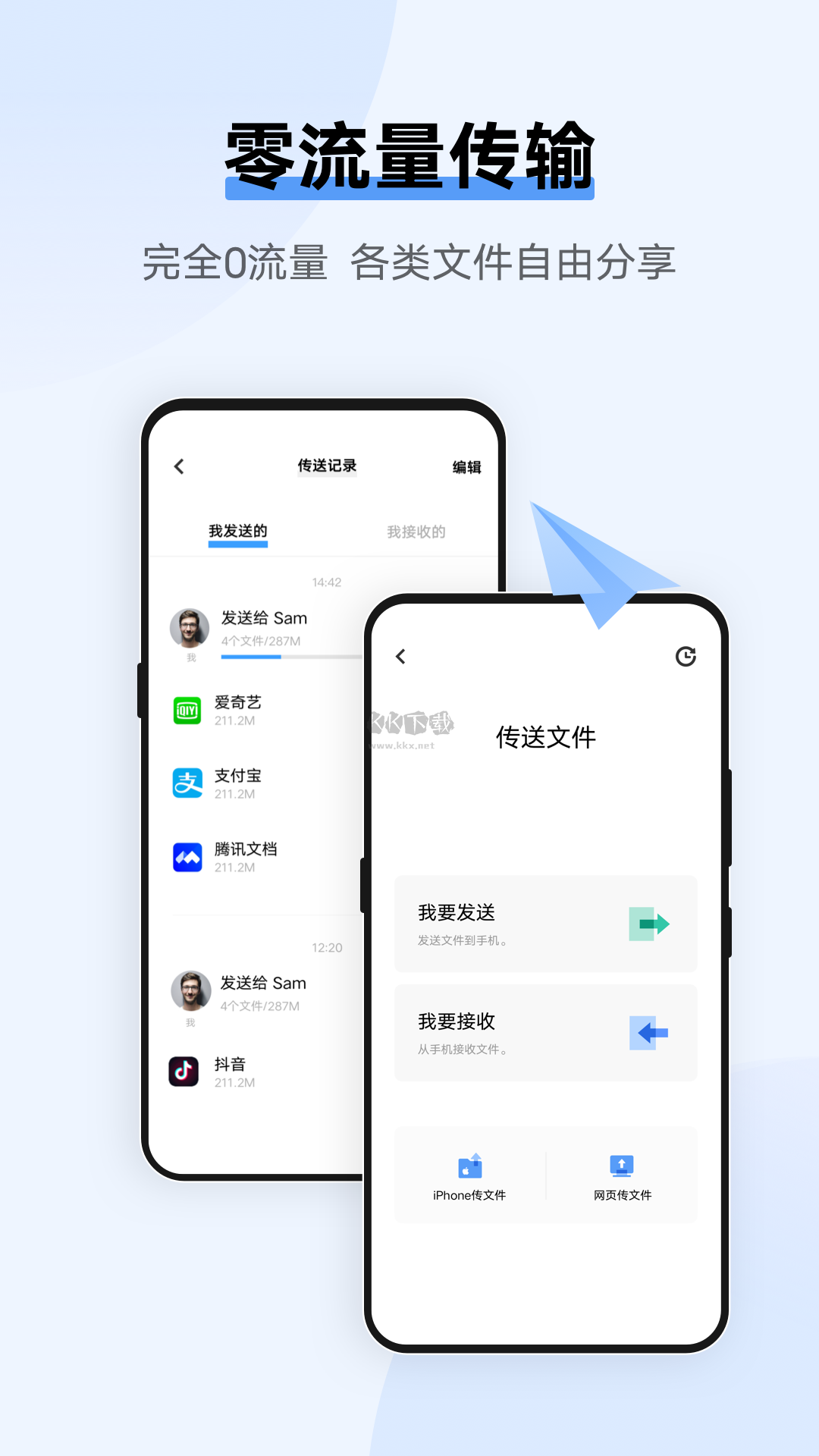 4. 互傳無需數(shù)據(jù)流量或WLAN連接,通過手機熱點可以實現(xiàn)最快6MB/s的藍牙傳輸速度,支持一對一或多對多文件傳輸。