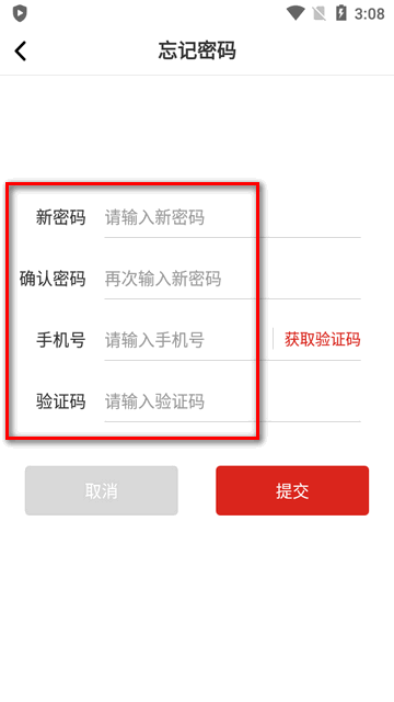 然后輸入新的密碼、手機(jī)號(hào)碼和驗(yàn)證碼,提交后即可完成密碼重置。