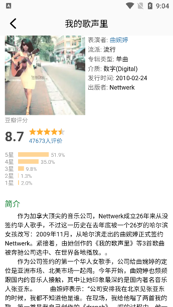 3、選擇您喜愛的歌曲,快速查看相關信息