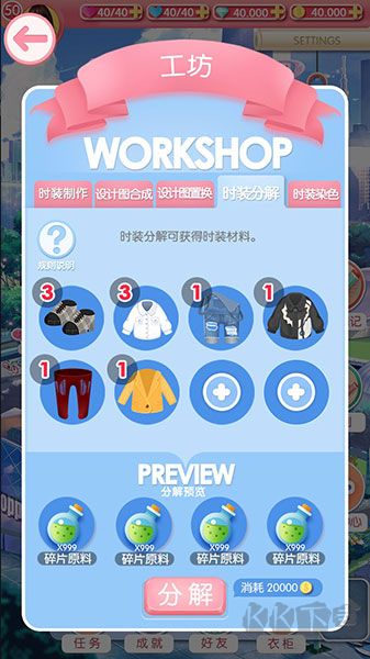 1、在工坊中,玩家可以消耗設(shè)計圖來制作相應(yīng)的時尚服裝。