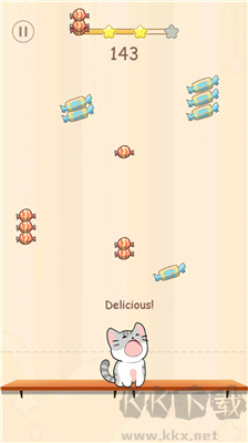 3、通過拖動貓咪接住掉落的食物,與音樂節(jié)奏互動。
