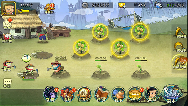 在《葫蘆娃》中,農(nóng)場系統(tǒng)是一項趣味十足的功能。完成第一章《勇闖妖洞》后就能開啟農(nóng)場,玩家可以在空地上播種。