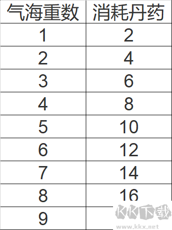 首先,來(lái)看一下每次提升氣海所需的氣海丹數(shù)量。