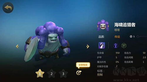 海妖是獵人陣容中的控制型棋子,技能范圍廣,十分實用。但1星的海妖回藍速度較慢,若有回藍裝備,建議給她裝備。2星后,海妖可以放置于前排,推薦追求2星。
