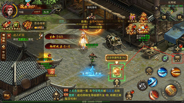 1、初期階段,跟隨主線任務(wù)進(jìn)行升級,約10分鐘左右即可達(dá)到200級。記得開啟掛機(jī)戰(zhàn)斗,這樣角色會自動進(jìn)行戰(zhàn)斗,同時也可以通過點(diǎn)擊靴子圖標(biāo)實(shí)現(xiàn)快捷傳送。