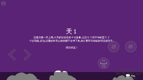 1、游戲的主要任務(wù)是幫助小朋友過(guò)馬路,這里沒(méi)有紅綠燈,車(chē)輛不停行駛。