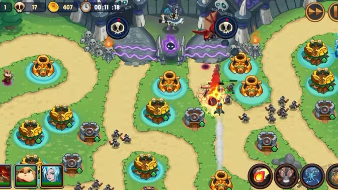 3、大炮防御塔:通過炮彈攻擊敵人,造成范圍性傷害。