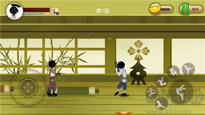 游戲采用了簡化的操作方式,左側(cè)區(qū)域用來控制角色的移動,而右側(cè)按鈕則用于釋放各種功夫連招。