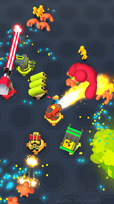 1、射擊對抗:玩家通過虛擬搖桿來控制角色的移動與射擊,打擊不斷來襲的僵尸。