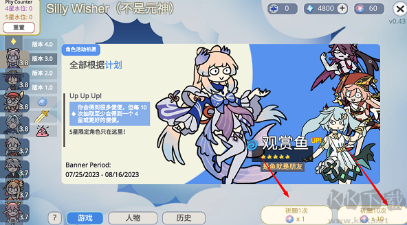 1、首先需要打開手機(jī)上的Silly Wisher應(yīng)用,首次進(jìn)入游戲時(shí),玩家將獲得60次免費(fèi)抽卡機(jī)會(huì)。