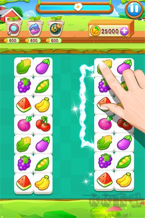 趣味果蔬連連看安卓版是一款非常好玩的消除類游戲,畫風清新可愛,里面的蔬果圖案也都是Q版的,比如葡萄、茄子、櫻桃、玉米等等,玩家要做的就是將同樣的蔬果進行連線,消除可以獲得分數(shù),達到關(guān)卡要求的分數(shù)就可以進入下一關(guān)了,很簡單很耐玩。