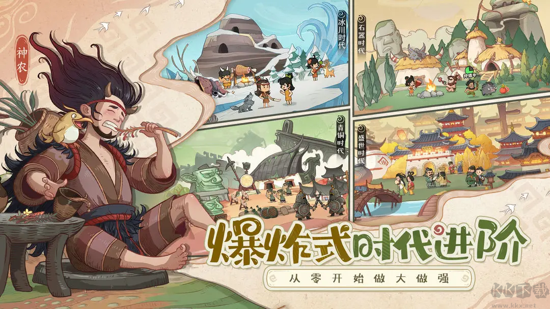 真實(shí)感:游戲中的經(jīng)營(yíng)部分基于人類(lèi)歷史發(fā)展,從遠(yuǎn)古時(shí)期的部落到封建時(shí)代的逐步演進(jìn),每個(gè)歷史階段都有不同的藝術(shù)風(fēng)格和更新,經(jīng)典的歷史故事,如神農(nóng)嘗百草、大禹治水等,也被巧妙地融入到小游戲中。