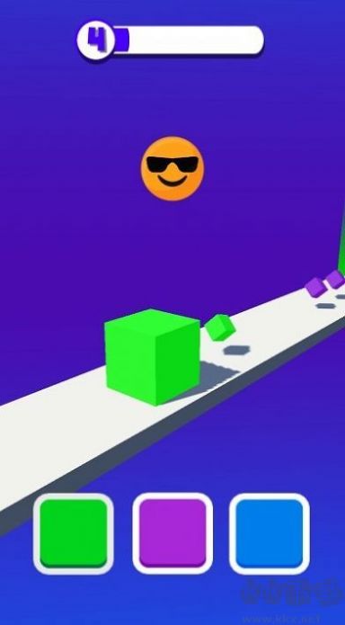 3、在游戲中,你將控制不同顏色的方塊向前移動,路上會有大量的小方塊等待你去碰撞。