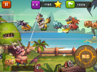 6、玩家操作角色用槍支擊落飛行中的巨龍,積累積分。