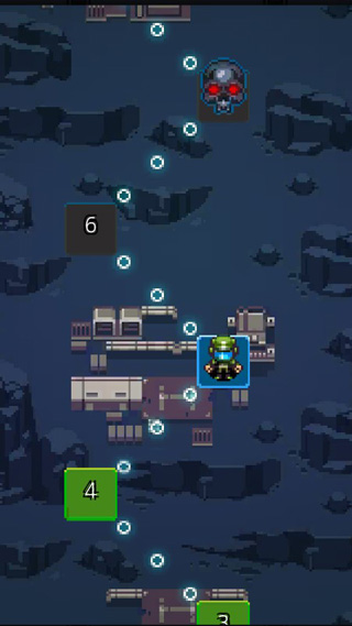 剛開(kāi)始時(shí),屏幕上會(huì)顯示一個(gè)小房間,點(diǎn)擊它后,會(huì)出現(xiàn)相鄰的房間,其中可能有怪物等候挑戰(zhàn)。為了前進(jìn)并找到出口,玩家需要擊敗這些怪物。點(diǎn)擊怪物即可進(jìn)入戰(zhàn)斗模式,每次點(diǎn)擊都會(huì)造成一次攻擊,而敵人也會(huì)反擊,玩家的血量會(huì)逐漸下降。擊敗怪物后,有時(shí)怪物會(huì)掉落殘骸,玩家可以點(diǎn)擊這些殘骸回復(fù)一定的血量。