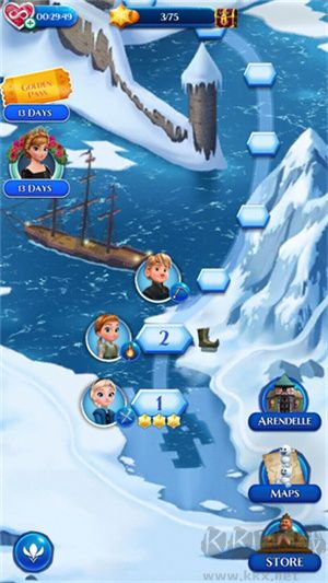 你可以使用安娜的「火把」來(lái)焚燒一排冰晶,或者通過(guò)愛莎的「冰河」道具消除相同顏色的冰晶。還有漢斯的「長(zhǎng)劍」可以直接砍除多個(gè)冰晶等各種酷炫的強(qiáng)化道具等待你來(lái)發(fā)現(xiàn)。