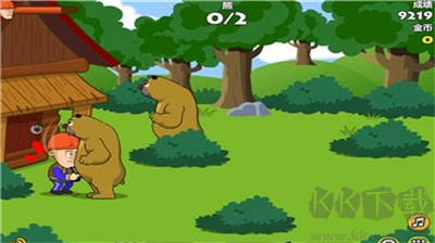 1、森林遭到破壞,一只巨熊朝著我們的房子撲來,玩家將控制光頭強拿起武器,誓死捍衛(wèi)自己的家園,阻止熊的入侵。