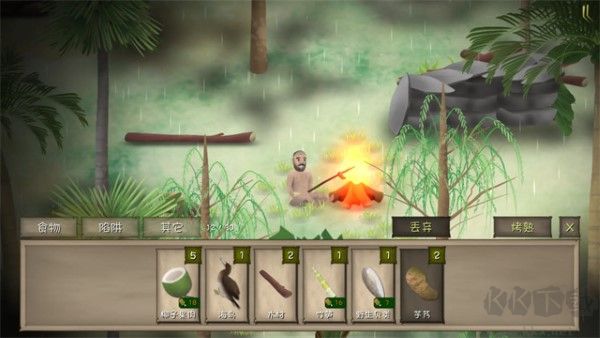 前期可以收集椰子、海草、貝殼,捕獵四腳蛇、螃蟹,挖掘芋艿、竹筍,甚至掏鳥蛋。