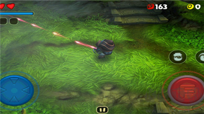 游戲采用了3D雙搖桿操作模式,左下角的虛擬搖桿控制角色移動(dòng),右下角的F按鈕用于攻擊。支持自動(dòng)瞄準(zhǔn),玩家只需控制怪物,按住攻擊鍵即可,操作簡(jiǎn)單直觀。