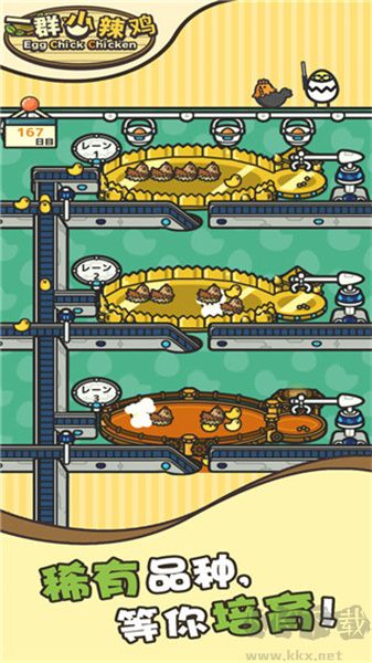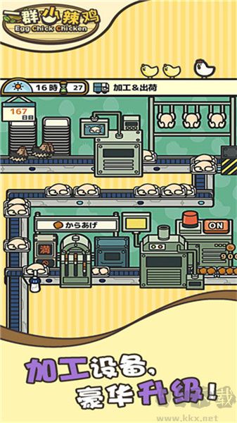 一群小辣雞最新版是一款手繪風(fēng)格的模擬經(jīng)營(yíng)類游戲,玩家將扮演一名養(yǎng)雞場(chǎng)的老板,負(fù)責(zé)管理自己的雞場(chǎng)以及相關(guān)的生產(chǎn)線,體驗(yàn)從供應(yīng)、生產(chǎn)到銷售的整個(gè)環(huán)節(jié)。你可以通過(guò)培育新品種來(lái)提高雞蛋的產(chǎn)量,直接加工出售獲取利潤(rùn),然后逐步擴(kuò)大養(yǎng)殖場(chǎng)的規(guī)模,升級(jí)工廠里各個(gè)設(shè)備的