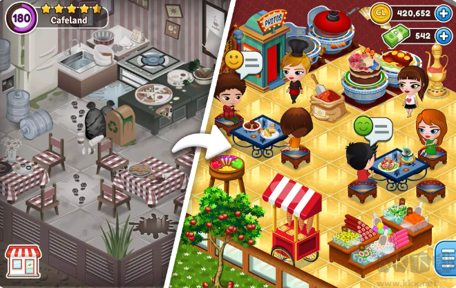 咖啡屋安卓版是一款模擬經(jīng)營類的游戲,采用餐廳經(jīng)營的玩法,享受經(jīng)營的樂趣,這款全新的烹飪游戲能夠收集各式各樣的配方,以及快餐、甜點、開胃菜等等,烹飪幾十種不同的菜肴,還有數(shù)百種閃閃發(fā)光的新物品,可以用來裝飾自己的咖啡店,吸引更多的用戶,心動的朋友趕緊下載