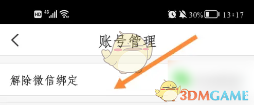 3、進入【賬號管理】后,點擊【解除微信綁定】選項,完成驗證后點擊確定,即可解除現(xiàn)有微信賬號的綁定。之后,用戶可以選擇重新綁定一個新的微信賬號,或選擇不再綁定微信。