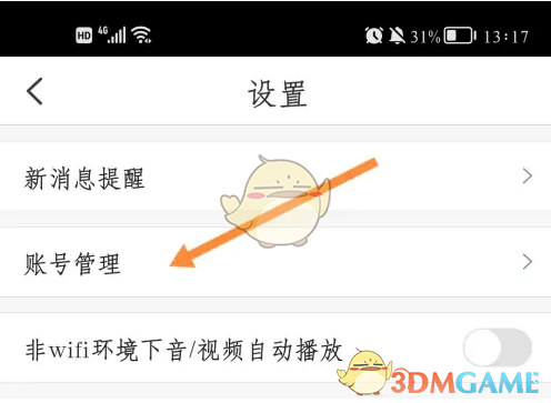 2、在設置頁面中,下拉查找并選擇【賬號管理】,點擊進入