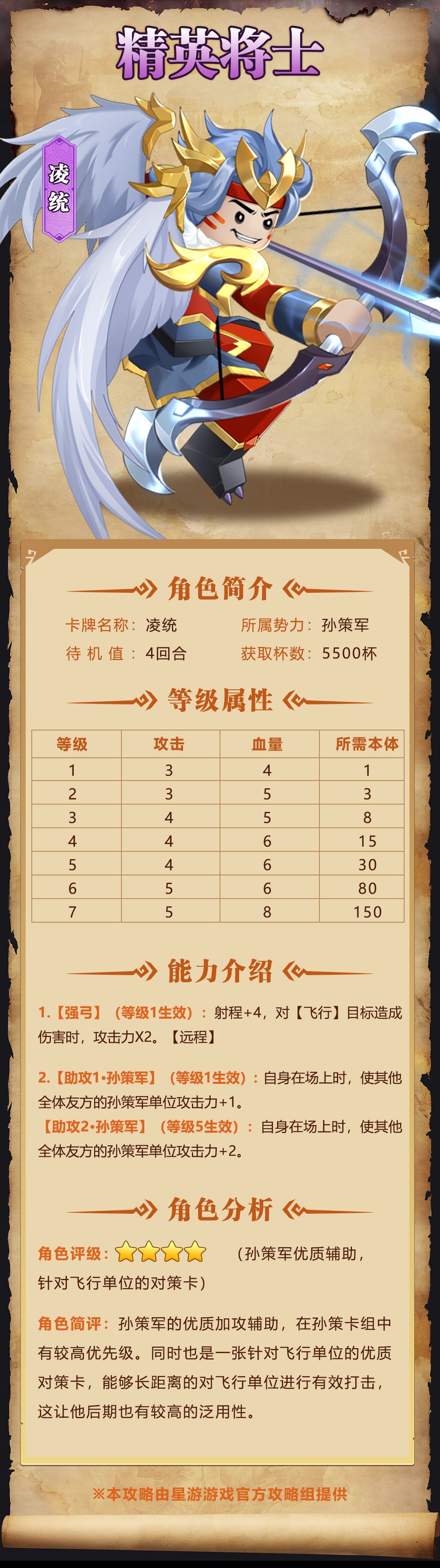 角色評(píng)級(jí):4星(孫策軍的高效輔助,尤其擅長(zhǎng)對(duì)付飛行單位)