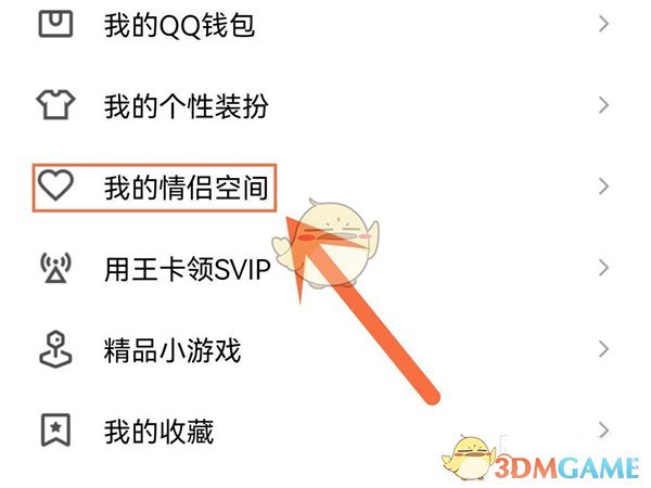 2、在彈出的菜單中選擇【我的情侶空間】。