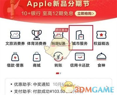 1、首先在手機上打開云閃付應用,找到頁面上方的“城市服務”選項并點擊進入。
