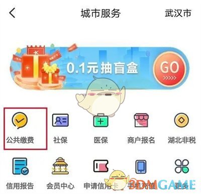 2、在“城市服務”頁面中,選擇“公共繳費”選項。