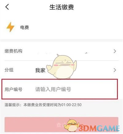 4、在電費繳納頁面,根據(jù)提示輸入電費用戶編號,點擊“查詢”,然后選擇查詢結果中的用戶編號進行支付。