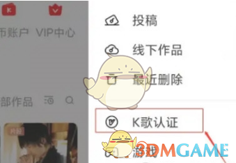 2、在彈出的選項(xiàng)中選擇“K歌認(rèn)證”;