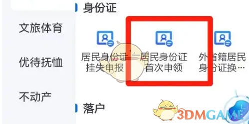 2、進(jìn)入辦事頁(yè)面后,選擇【居民身份證*申領(lǐng)】。