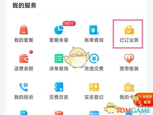 1、首先,打開(kāi)并登錄中國(guó)移動(dòng)app,在“我的”頁(yè)面點(diǎn)擊【已訂業(yè)務(wù)】。