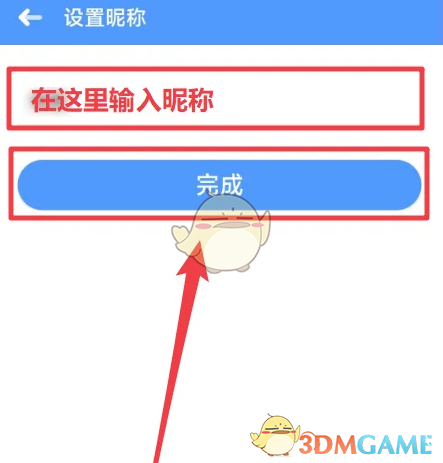 4、在【設(shè)置昵稱(chēng)】頁(yè)面,輸入新的昵稱(chēng)后,點(diǎn)擊【完成】按鈕,即可成功修改伴魚(yú)繪本的昵稱(chēng)。