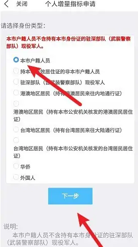 4、選擇您的戶籍信息,然后點擊【下一步】。