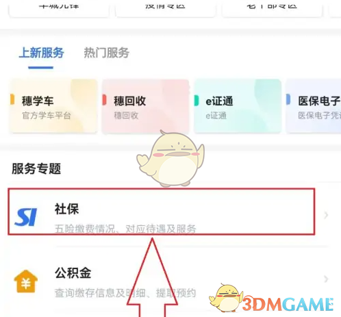 1、訪問“社保業(yè)務”主頁:打開“穗好辦”App,在主界面的“服務專題”部分點擊“社保”。