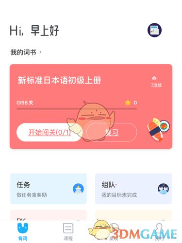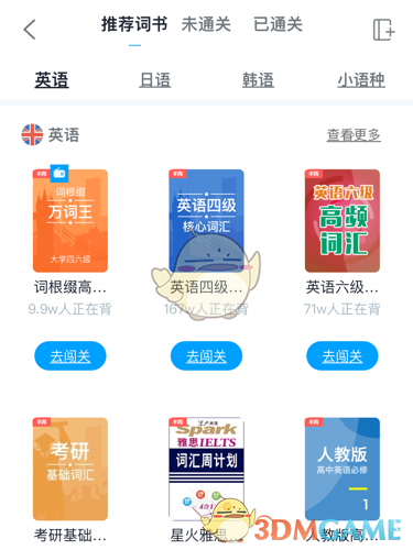 3、若需要調(diào)整每日關(guān)卡單詞數(shù)量,可以點(diǎn)擊背詞界面的“我的詞書(shū)”按鈕,查看已添加的詞書(shū)。