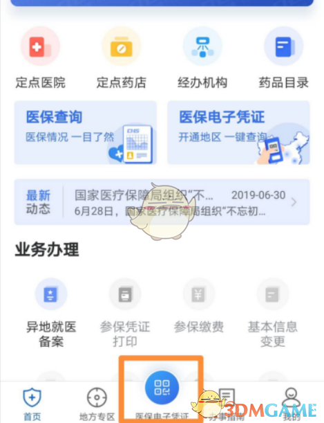3、注冊完成后,進(jìn)行醫(yī)保電子憑證的激活。點(diǎn)擊主頁下方的“醫(yī)保電子憑證”選項(xiàng)。