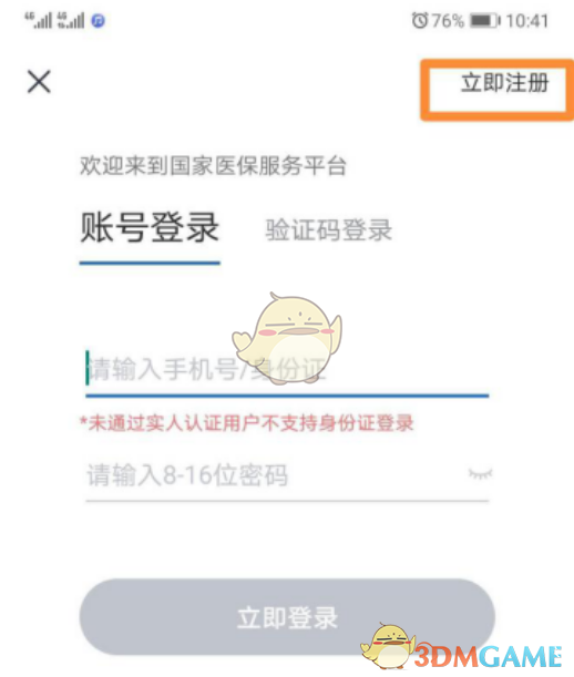 2、隨后點(diǎn)擊“立即注冊”,填寫個人信息并完成實(shí)名認(rèn)證。