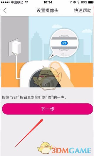 3、設(shè)置攝像頭后,聽到提示音,點擊“下一步”繼續(xù)。