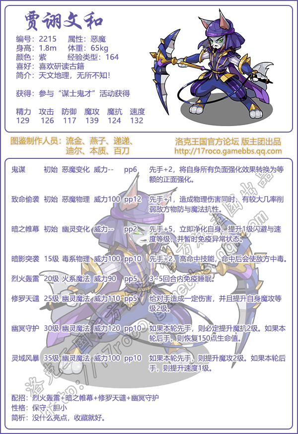 《洛克王國(guó)》賈詡角色文檔及技能圖鑒