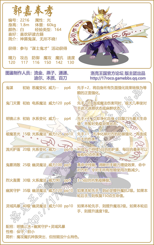 《洛克王國(guó)》郭嘉奉孝技能表圖鑒