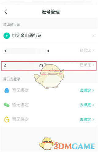 3、在賬號(hào)管理頁(yè)面,你會(huì)看到金山通行證的列表。選擇要解綁的賬號(hào),并點(diǎn)擊該賬號(hào)。