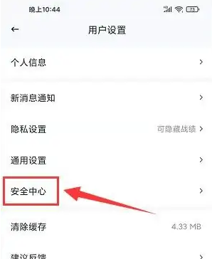 3、進(jìn)入用戶設(shè)置頁(yè)面后,選擇“安全中心”選項(xiàng)。