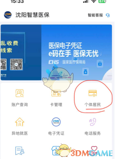 1. 首先,在“沈陽(yáng)智慧醫(yī)?!盇PP中,選擇“個(gè)體居民”選項(xiàng)。