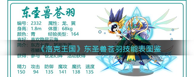 以上就是關于《洛克王國》東圣獸蒼羽技能表圖鑒的詳細